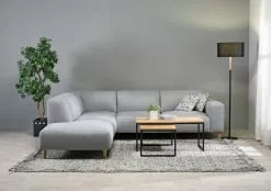 Kotimainen Pielinen-kulmadivaani on kodin katseenvangitsija. Sen leveät käsinojat, pehmeät kulmat ja huolelliset tikkaukset tuovat sisustukseen tyylikästä pohjoismaista seesteyttä.
