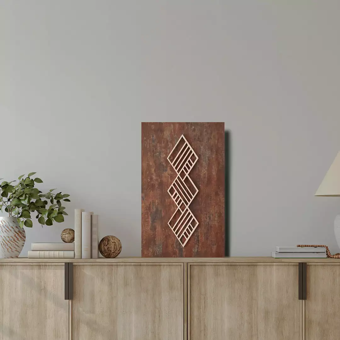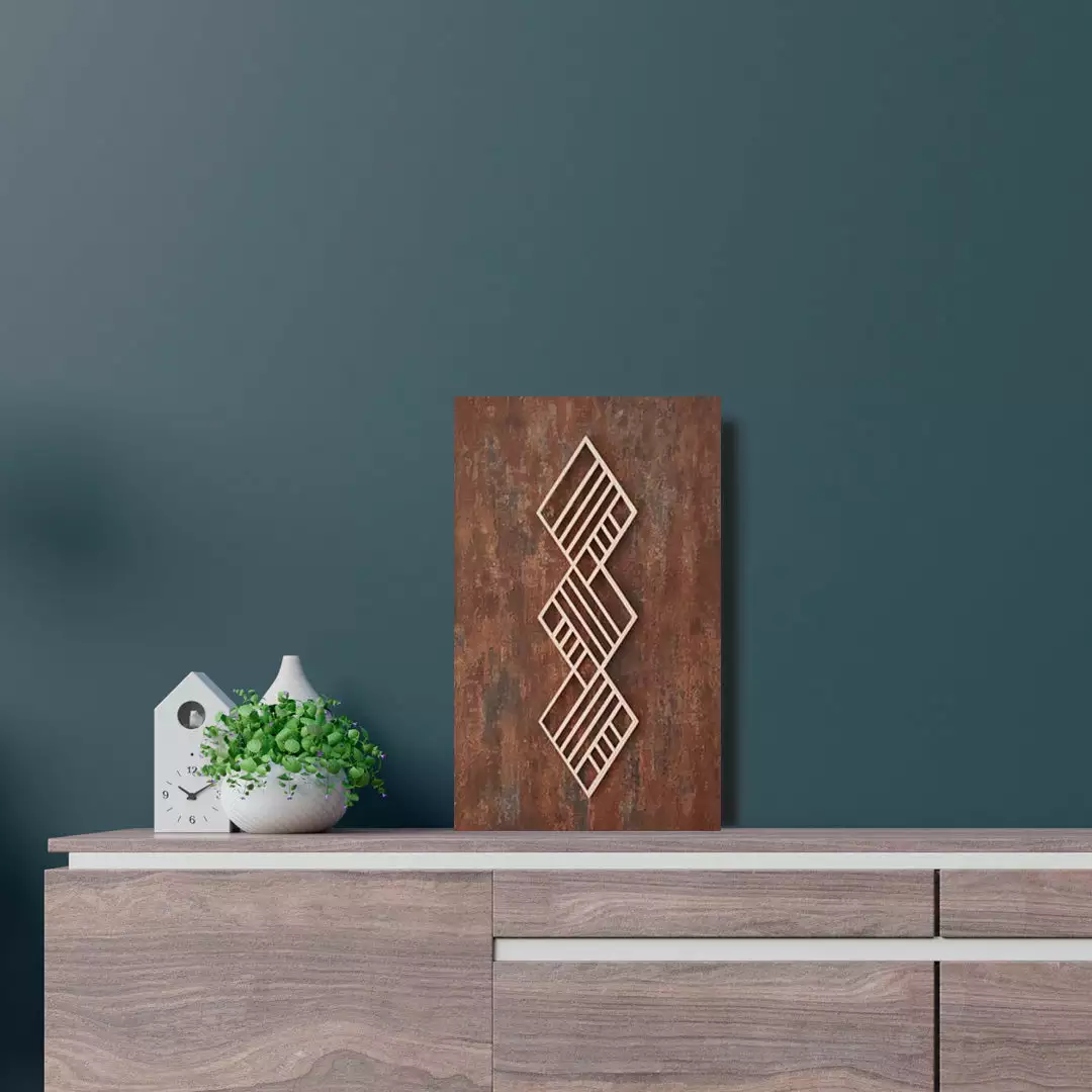 Koivuiset Boho Vinouma -sisustustaulu on kotimainen ja tyylikäs taulu, jonka kolmiulotteinen rimakuviointi luo sisustukseen syvyyttä ja harmoniaa. Taulun pintaan kiinnitetty koivuvanerista valmistettu vino himmelikuvio tuo tauluun modernia ja graafista ilmettä. Taulun upeat yksityiskohdat sopivat hyvin esimerkiksi skandinaaviseen tai moderniin sisustukseen. Yhdistämällä rohkeasti eri värisiä tauluja rinnakkain voit luoda näyttäviä kokonaisuuksia isommallekin seinälle!