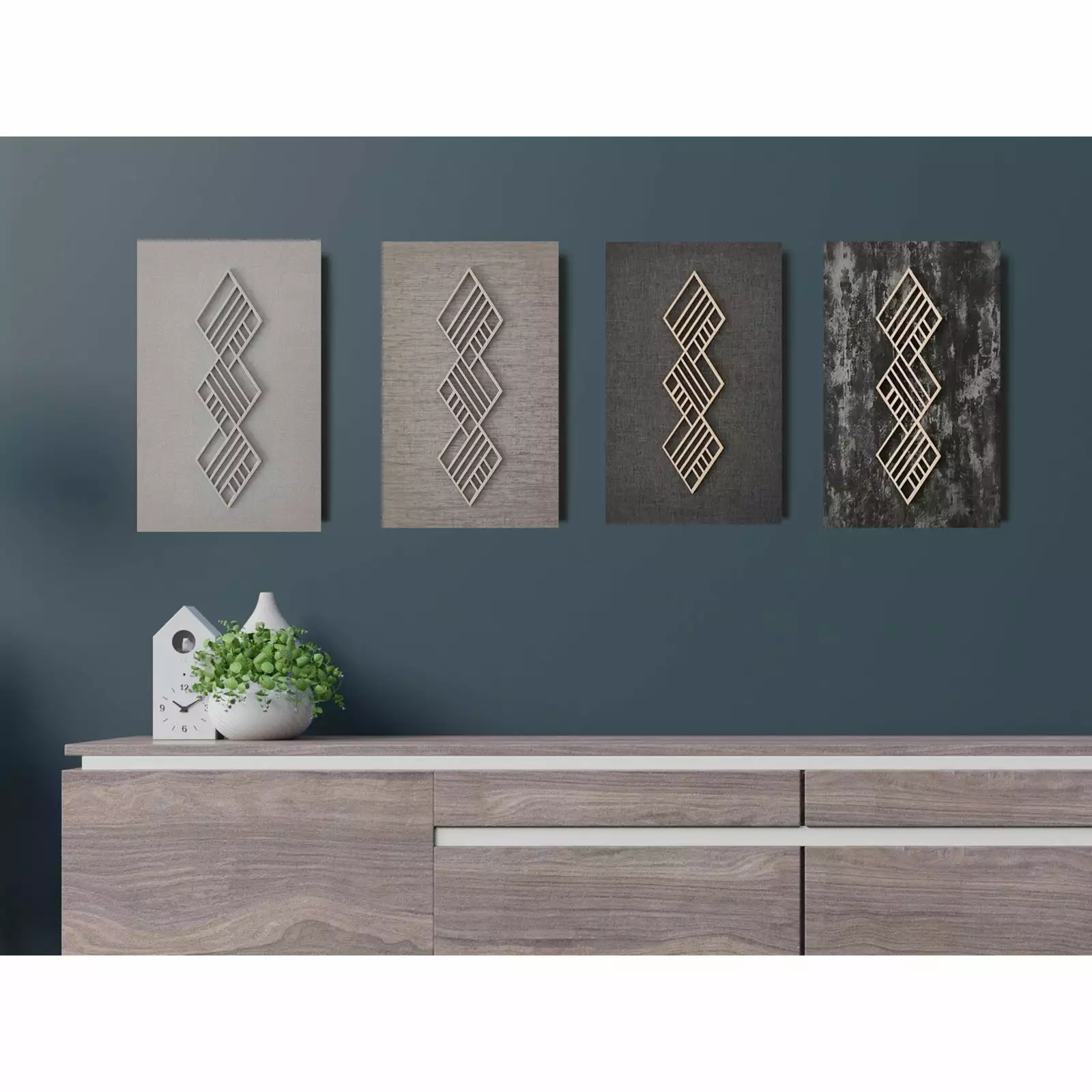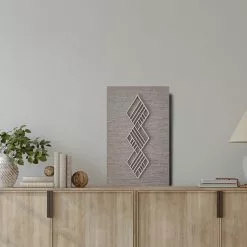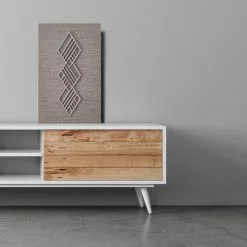 Koivuiset Boho Vinouma -sisustustaulu on kotimainen ja tyylikäs taulu, jonka kolmiulotteinen rimakuviointi luo sisustukseen syvyyttä ja harmoniaa. Taulun pintaan kiinnitetty koivuvanerista valmistettu vino himmelikuvio tuo tauluun modernia ja graafista ilmettä. Taulun upeat yksityiskohdat ja vaaleat värisävyt sopivat hyvin esimerkiksi skandinaaviseen tai moderniin sisustukseen. Yhdistämällä rohkeasti eri värisiä tauluja rinnakkain voit luoda näyttäviä kokonaisuuksia isommallekin seinälle!