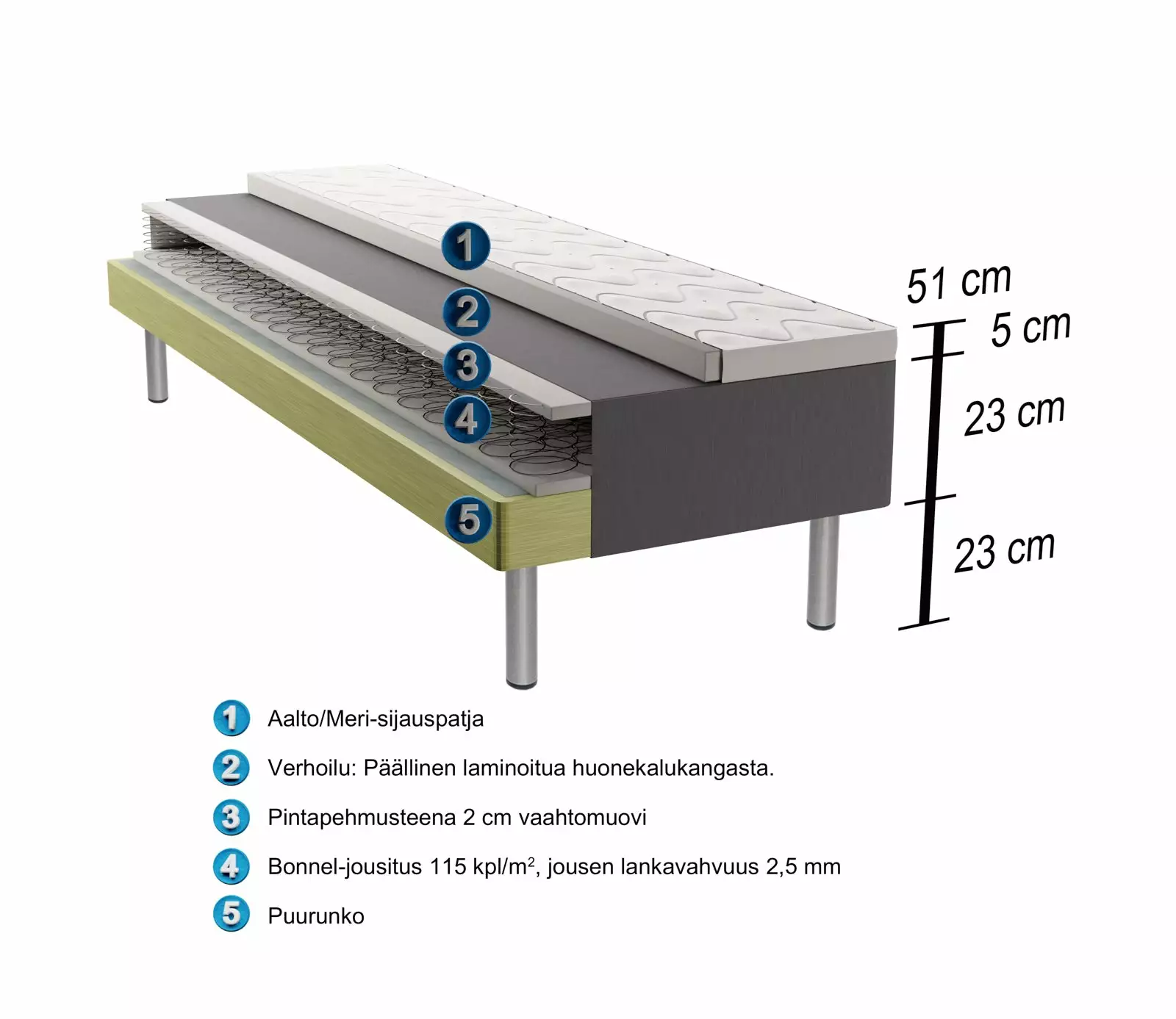– Aalto/Meri- profiloitu sijauspatja, paksuus 50 mm