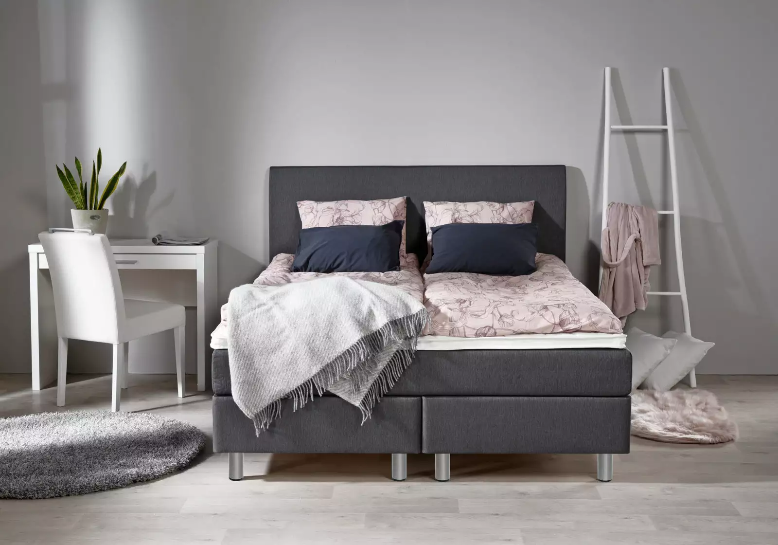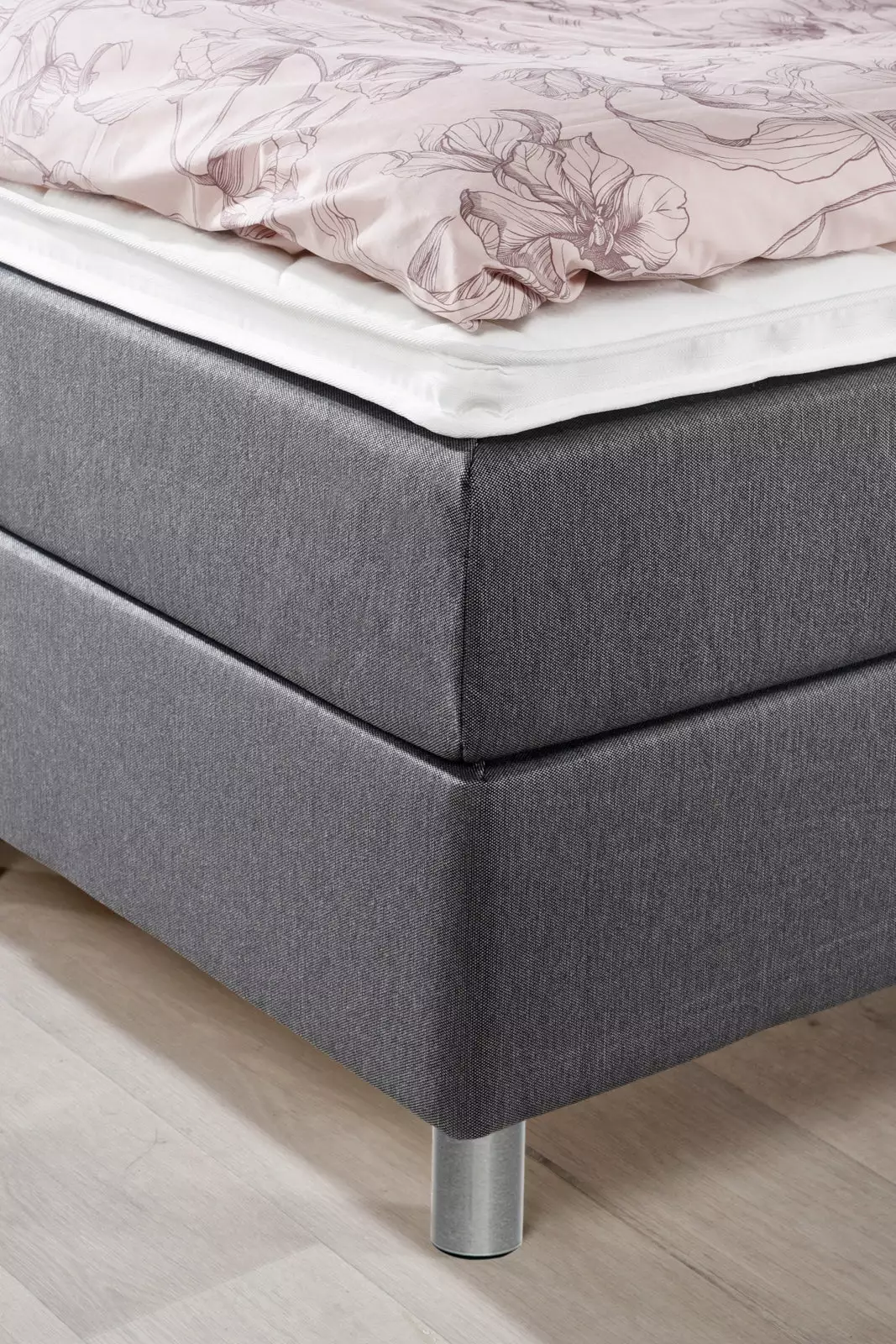 Patjan makuupinnalla on joustokangas, joka parantaa jousiston kykyä muotoutua kehon mukaan. Verhoiluna vahva laminoitu kangas sisustuksellisessa harmaan värissä.