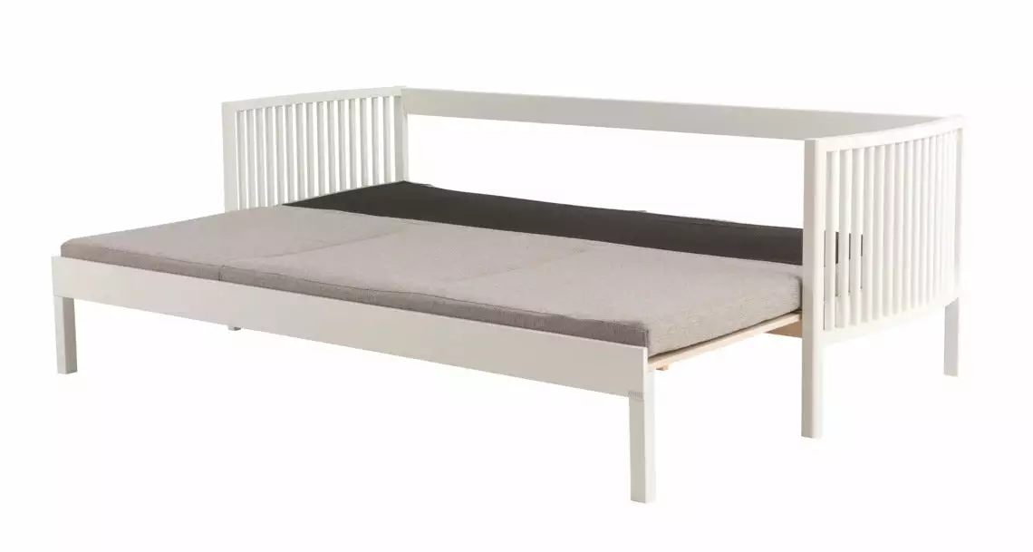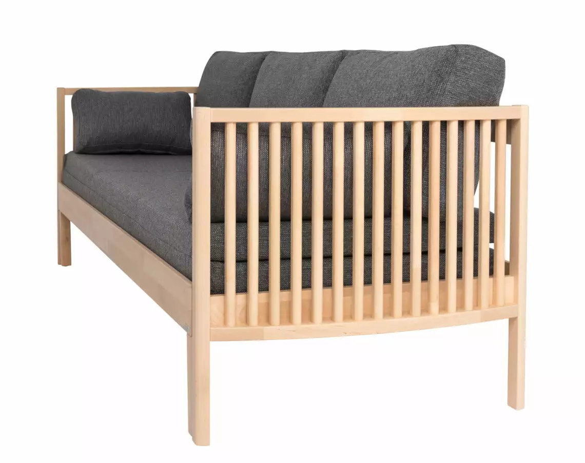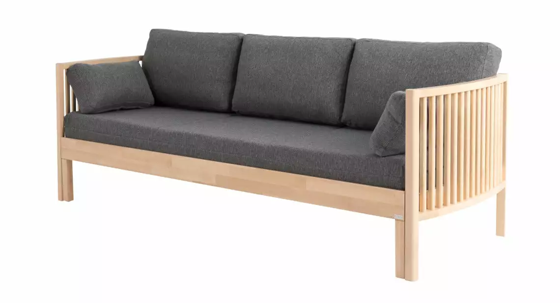 Aarre-vuodesohvasta saa entistä monikäyttöisemmän Franz-vuodevaatelaatikon kaverina. Kolmen hengen puusohvaan sopii esimerkiksi Levon-taittopatjasarjamme ja sohvasta saa taittopatjan avulla helposti vuoteen. Vuodevaatelaatikko, taittopatja ja patjasarja ovat myynnissä erikseen.