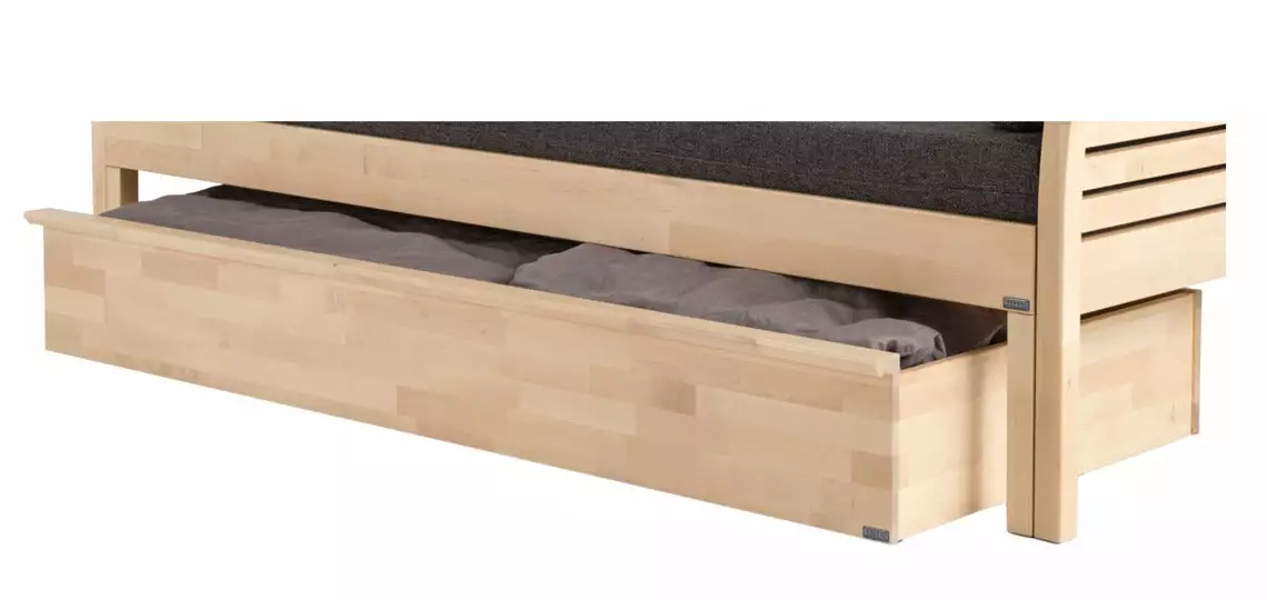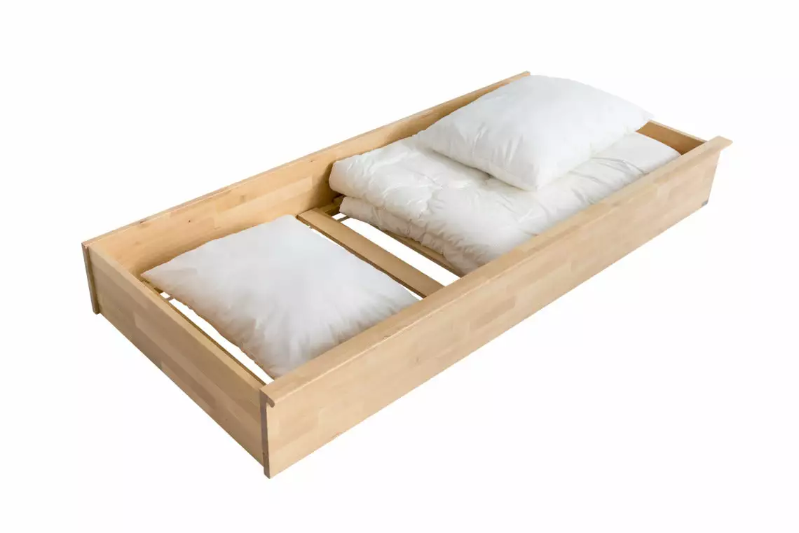Vuodevaatelaatikkoa on saatavana yhteensopivissa Kanerva-puusohvan väreissä lakattuna, petsattuna ja maalattuna. Kestävä sängynaluslaatikko on sopiva molempien, kahdessa eri koossa saatavien Kiteen Huonekalutehtaan Kanerva-vuodesohvien alle.
