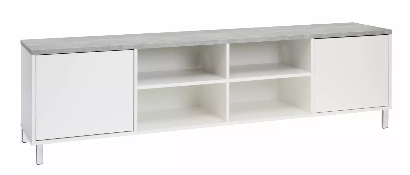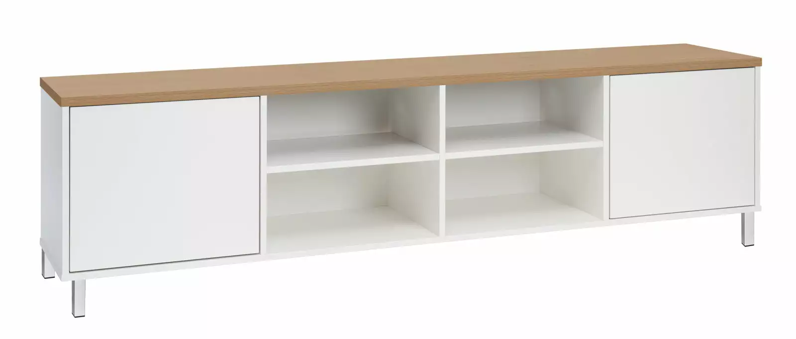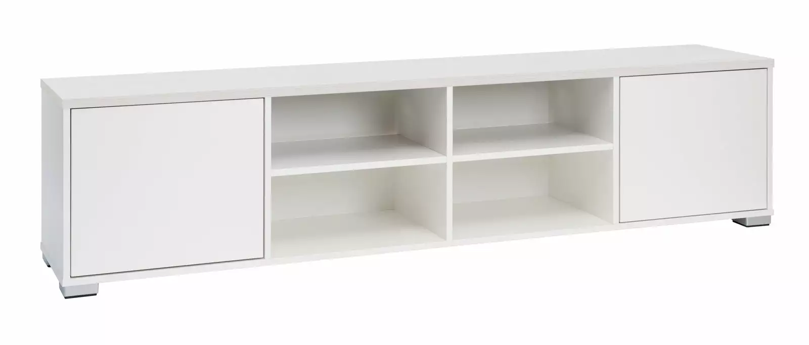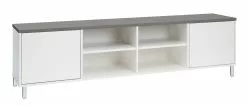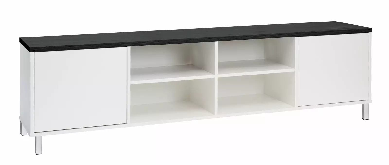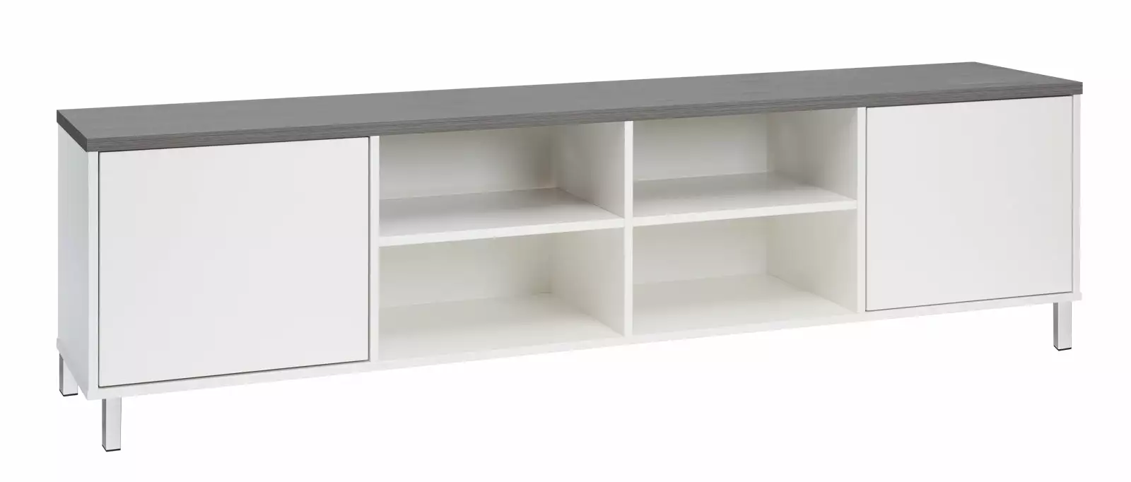 Kivi-sarjan leveä tv-taso toimii myös näppäränä matalana tasona, joka tuo reilusti säilytys- ja laskutilaa eri tiloihin. Kivi-tv-tason avulla television ja oheislaitteet saa sijoiteltua parhaalla mahdollisella tavalla. Viihdekeskuksessa on tasotilan lisäksi keskiosan avohyllyt ja niiden molemmin puolin tilaa medialaitteille kahden ovikaapin verran. Ovikaapeissa on johtoaukot kaapeleille ja kaappitiloja saa säädeltyä sopiviksi siirrettävillä välihyllyillä.