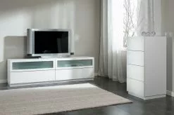 Lumo tuo kotiin ylellisyyttä hohtavan valkoisena. Korkeakiiltomaalatut etusarjat ja valkoiset lasikannet viimeistelevät kalusteet upeasti. Kätevä ’push to open’ -mekanismi tekee käytöstä nautittavan helppoa. Mukana tulee seinään kiinnittämistä varten kaatumisenestonauha, jolla etenkin lapsi- tai lemmikkiperheessä voi turvata huonekalun paikallaan pysymisen.