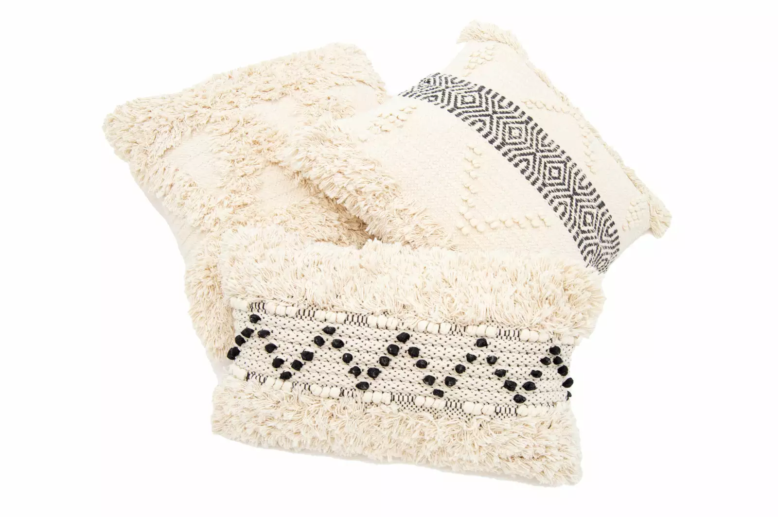 Mattokympin näyttävällä Lumo-koristetyynyllä viimeistelet kotisi sisustuksen. Kauniisti erilaisia pintoja yhdistelevä kuosi antaa sisustustyynyille trendikkään ja boheemin ilmeen. Heitä rennosti sohvalle tai piristä makuuhuoneen ilmettä. Sisustustyynyssä on vetoketju. Materiaali 100 % puuvillaa.Â