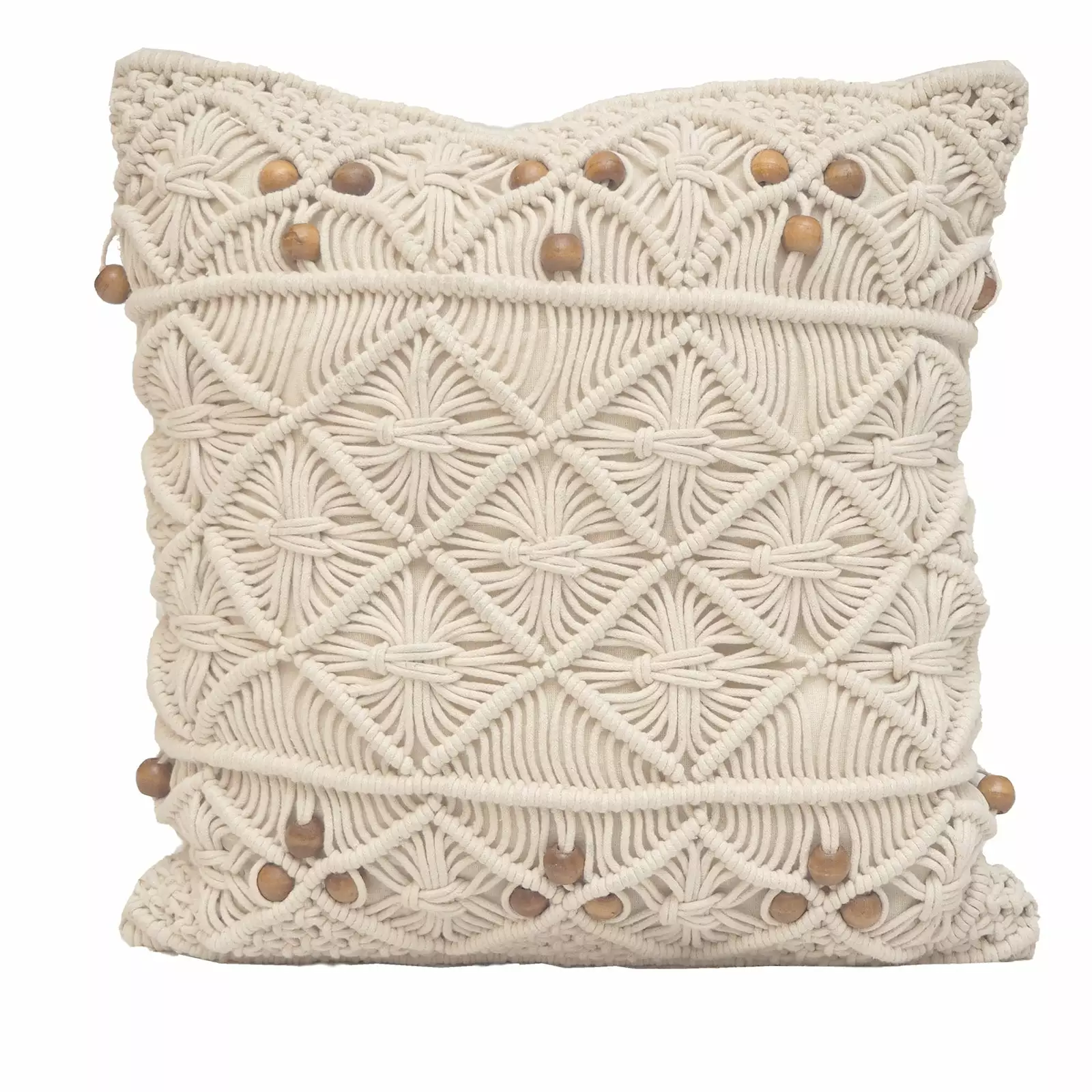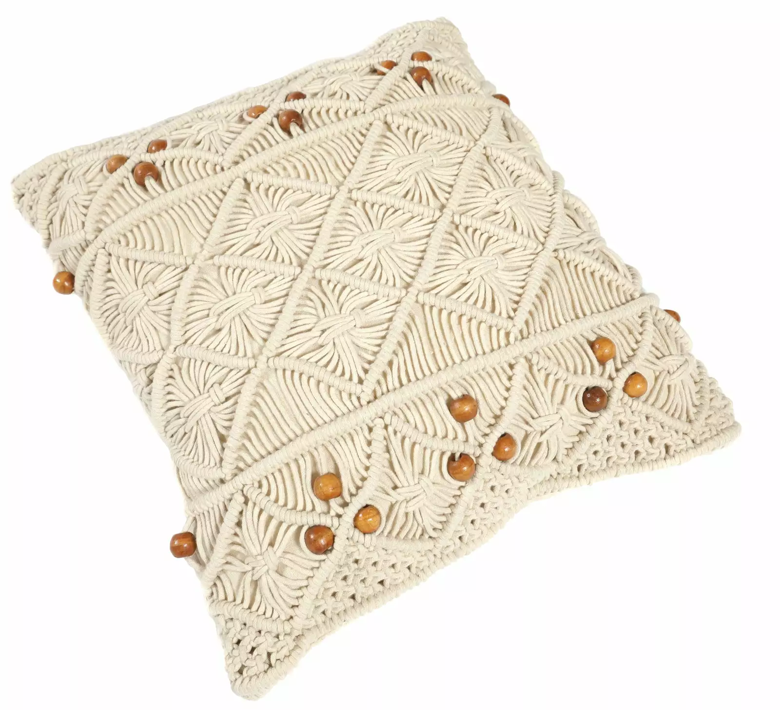 Kauniisti solmittu tyyny on trendikäs sisustuksen katseenvangitsija, jolla tuot kotiisi boheemia ilmettä. Makrame-tyynyssä on puuhelmet, jotka luovat sille lisää koristeellisuutta ja huolitellun viimeistelyn.