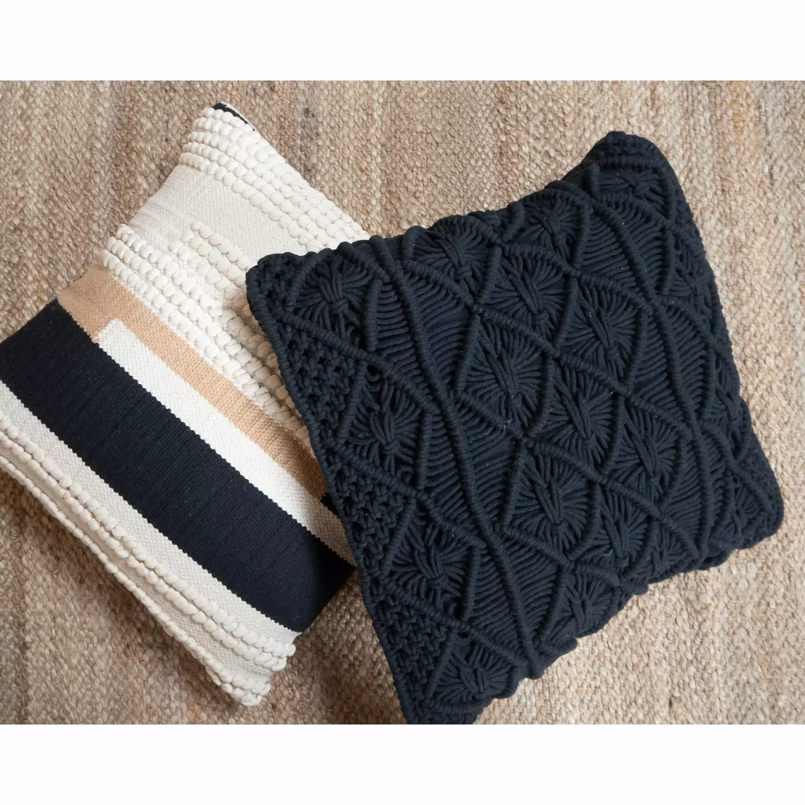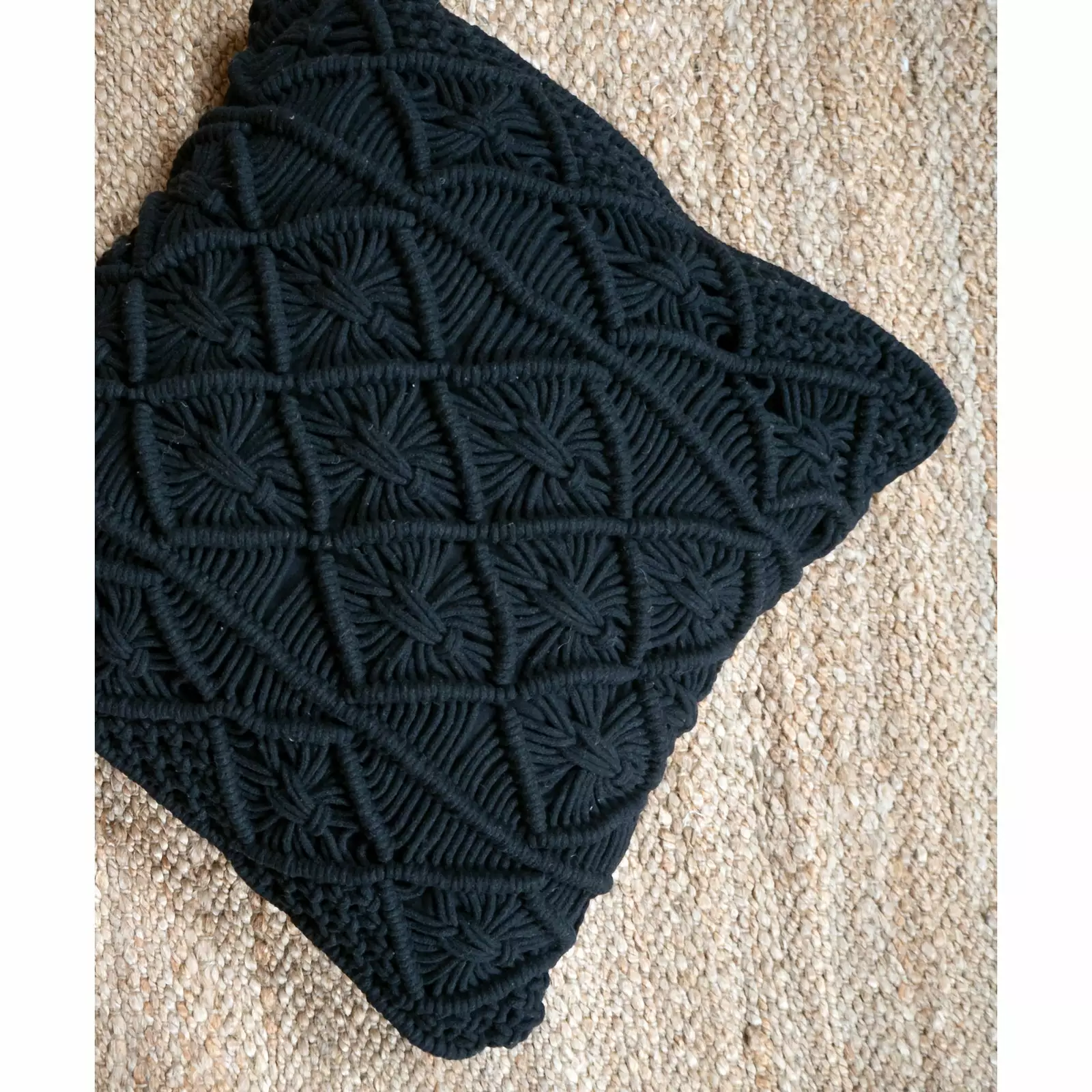 Korista kotiasi kauniisti solmitulla mustalla makramee-tyynyllä. Heitä koristetyyny huolettomasti sängylle tai piristä sohvanurkkaustasi. Trendikäs musta-väri on varma katseenvangitsija, joka sopii upeasti myös perinteisen väristen makrametuotteiden ja tyynyjen joukkoon – kerää vaikka koko makramee-tyynykokoelma!