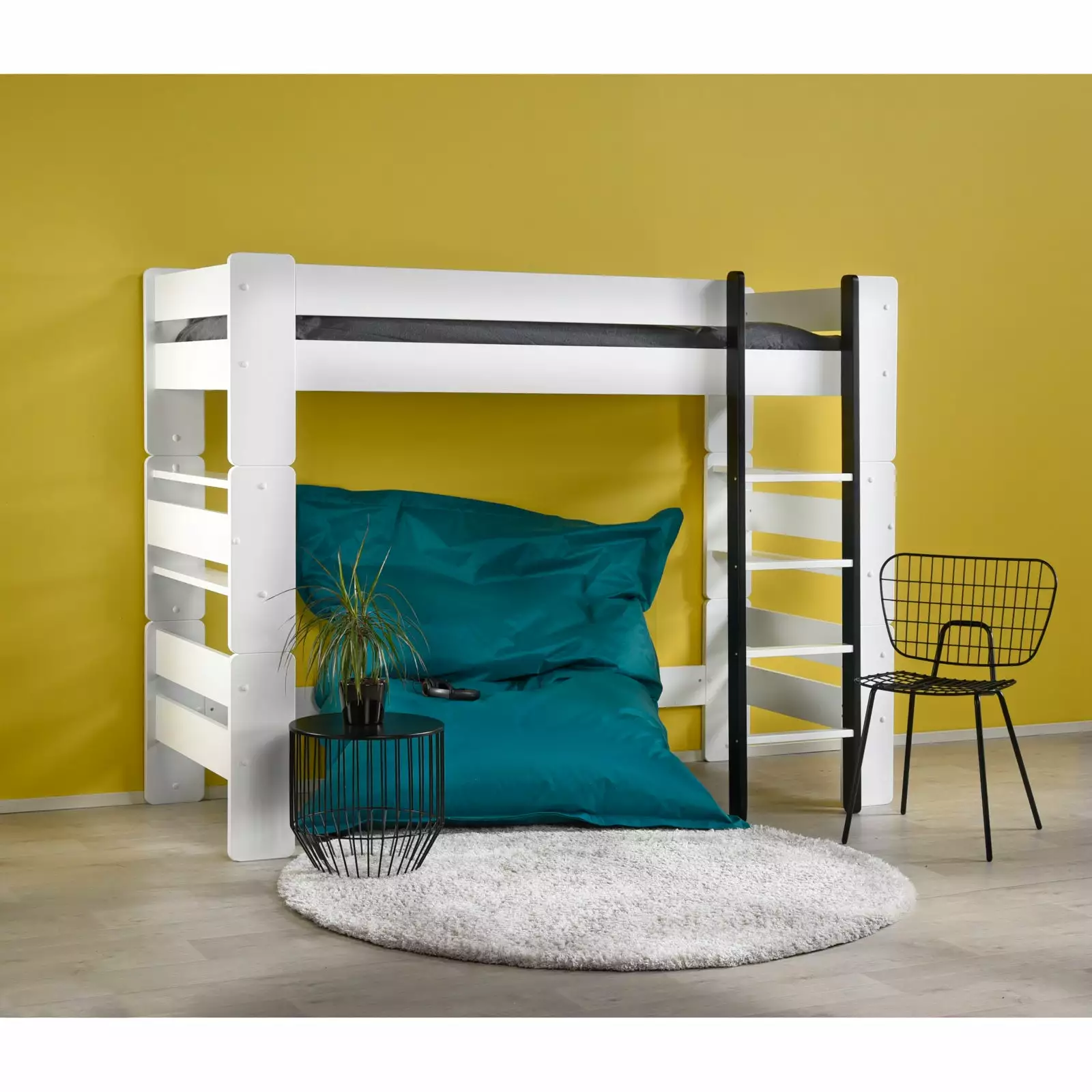 Korkeasta Unipuu-parvisängystä saat mieluisan ja monipuolisen kokonaisuuden lastenhuoneeseen – parven sängyn alle sijoitat esimerkiksi lukunurkkauksen, tai leikkitilan. Parven mukana tulee leluille ja kirjoille säilytystilaa kahden hyllyn muodossa.