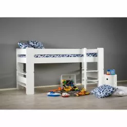 Matalasta Unipuu-parvisängystä saat mieluisan ja monipuolisen sänkykokonaisuuden lastenhuoneeseen – pienen puolikorkean parven alle jäävä tila tarjoaa mainiota leikki- ja säilytystilaa, jonne sijoitat esimerkiksi lukunurkkaksen. Parven mukana tulee leluille ja kirjoille säilytystilaa kahden hyllyn muodossa.