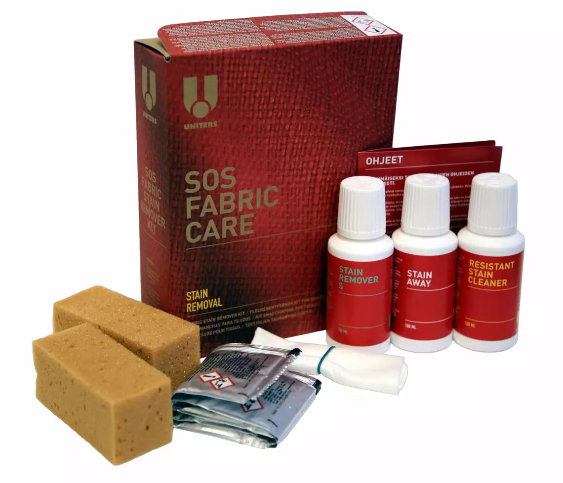 Uniters -tuotesarjan tahranpoistosetti sisältää neljä eri valmistetta, joilla voidaan poistaa tahrat mistä tahansa tekstiilityypistä. SOS-tuotteet sopivat tahranpoistoon esimerkiksi auton tai veneen istuintekstiileistä, sohvista, matoista, kokolattiamatoista, patjoista, verhoilukankaista, ja vaatteista. Paketin tuotteilla voi poistaa sekä uusia, että vanhoja tahroja, kuten juoma-, ruoka-, kastike-, muste-, virtsa-, veri-, oksennus- ja huulipunatahroja.