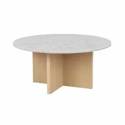 Laadukas Brooksville-sohvapöytä luo kotisi sisustukseen upeaa ilmettä. Ylellisessä japanilaistyylisessä sohvapöydässä skandinaavinen muotoilu kohtaa japanilaisen minimalismin ja on myös kaunista katsottavaa. Tukevassa sohvapöydässä on aidosta marmorista valmistettu pyöreä 90 cm pöytälevy yhdistettynä FSC-sertifioitujen puisten jalkojen kanssa.