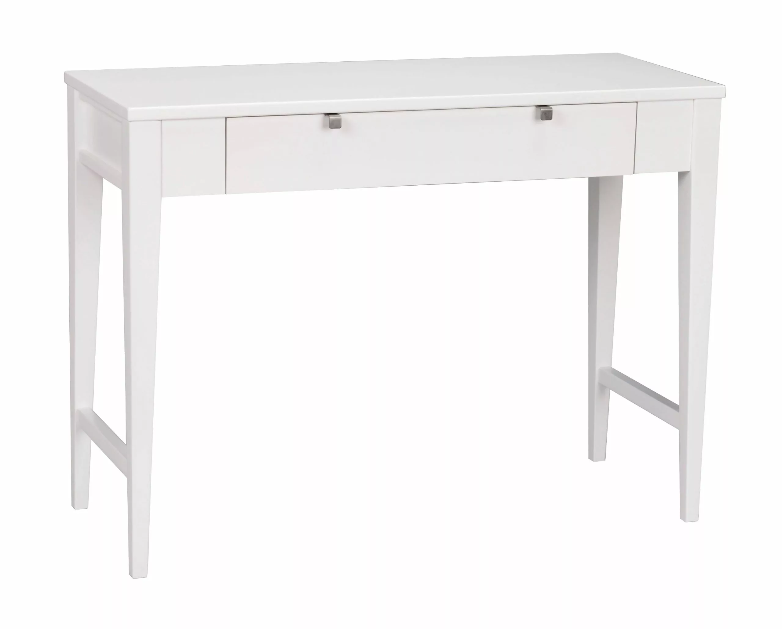 Konsolipöydässä on tilava laatikko avaimille ja muille pienesineille. Pöydän jalat kapenevat alaspäin ja on pöytää on saatavana eri väreissä.