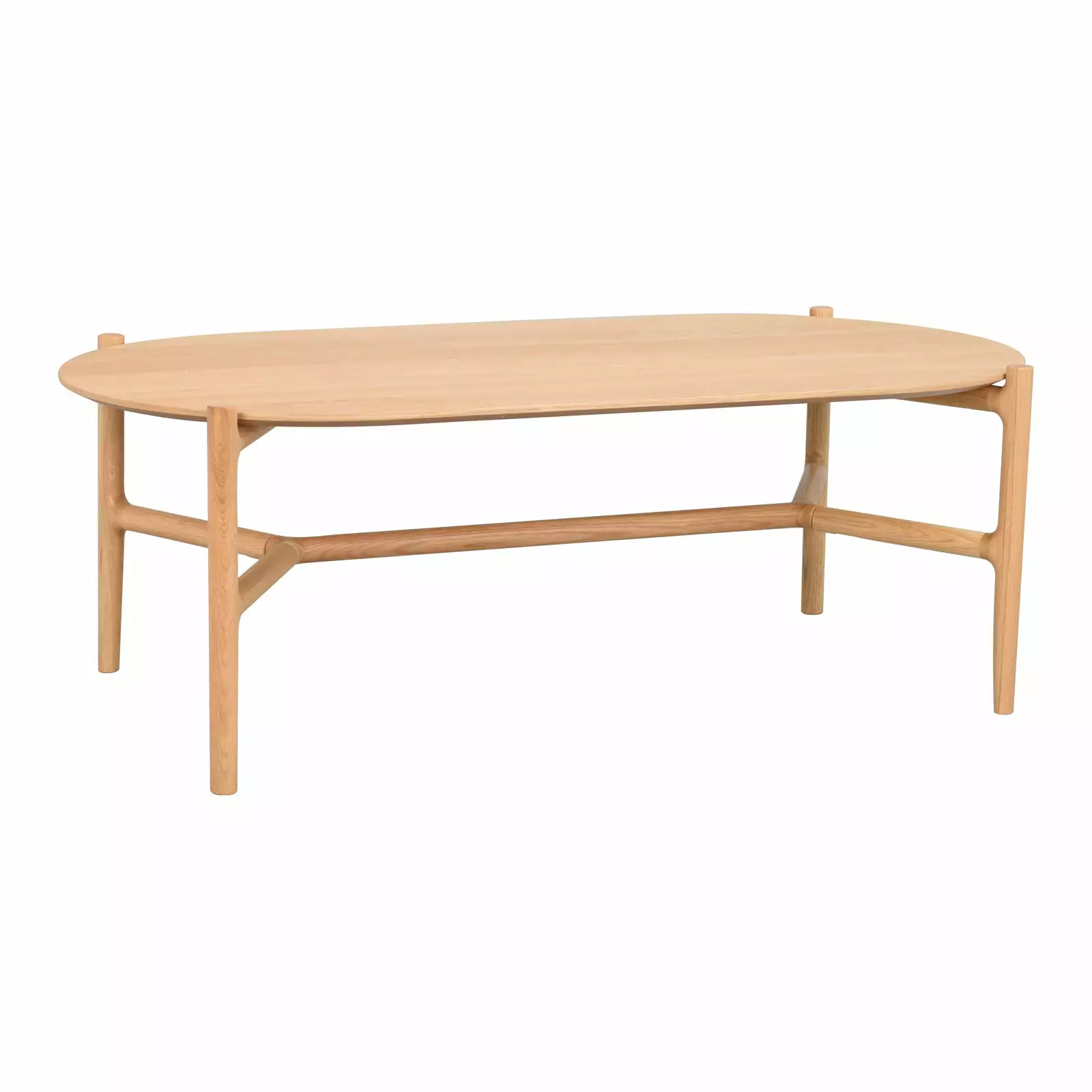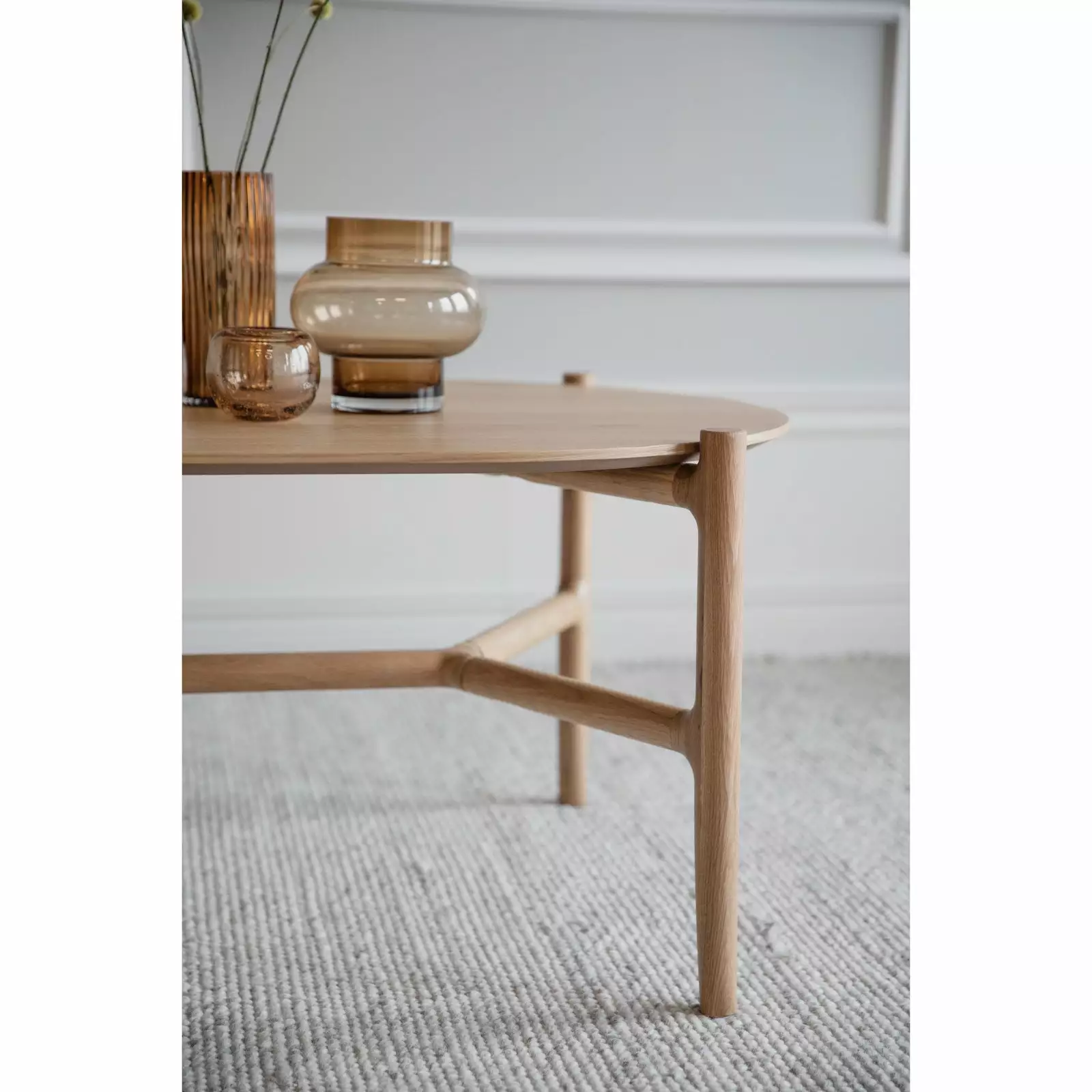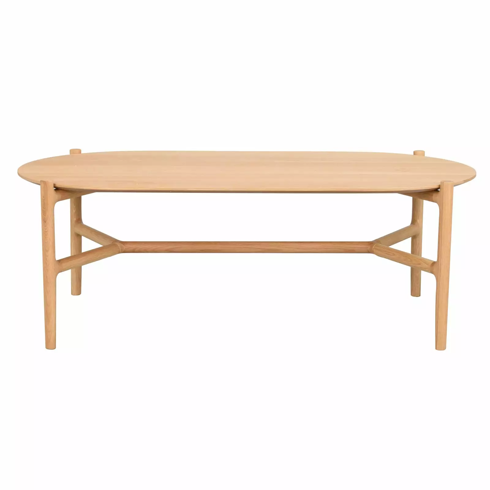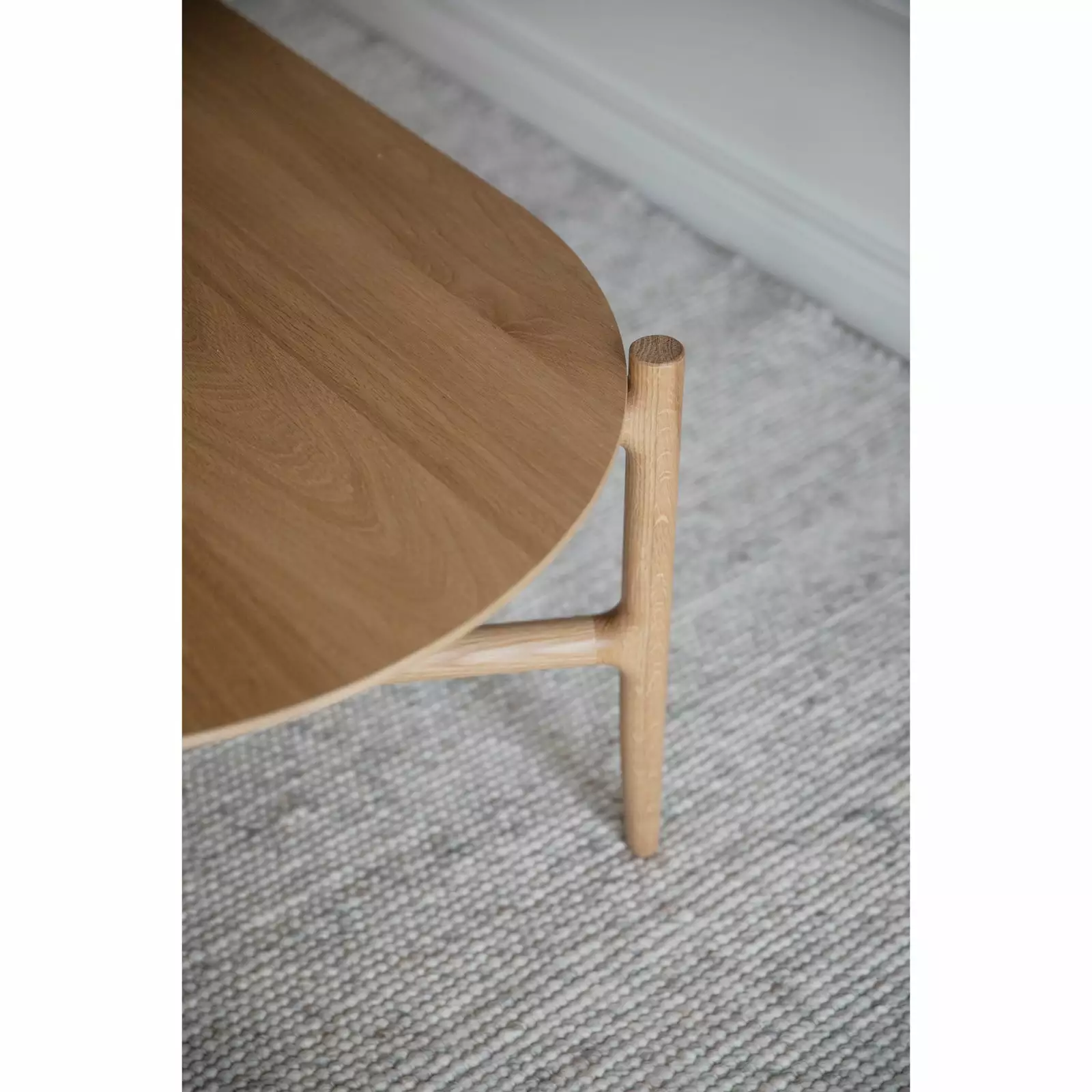 Laadukas ovaalin muotoinen Holton-sohvapöytä luo kotisi sisustukseen upeaa ilmettä. Skandinaavisesti muotoiltu Holton on ainutlaatuisen näköinen ja tukeva sohvapöytä, joka on myös kaunista katsottavaa. Pyöreät muodot pehmentävät pöydän ilmettä ja jalkojen uniikki muotoilu vangitsee katseet tähän kauniiseen olohuoneen keskipisteeseen. Sohvapöydän kansi on valmistettu tammiviilusta ja vankat jalat ovat massiivitammea. Lakatun pinnan ansiosta pölyjen pyyhkiminenkin on helppoa puupinnalta.