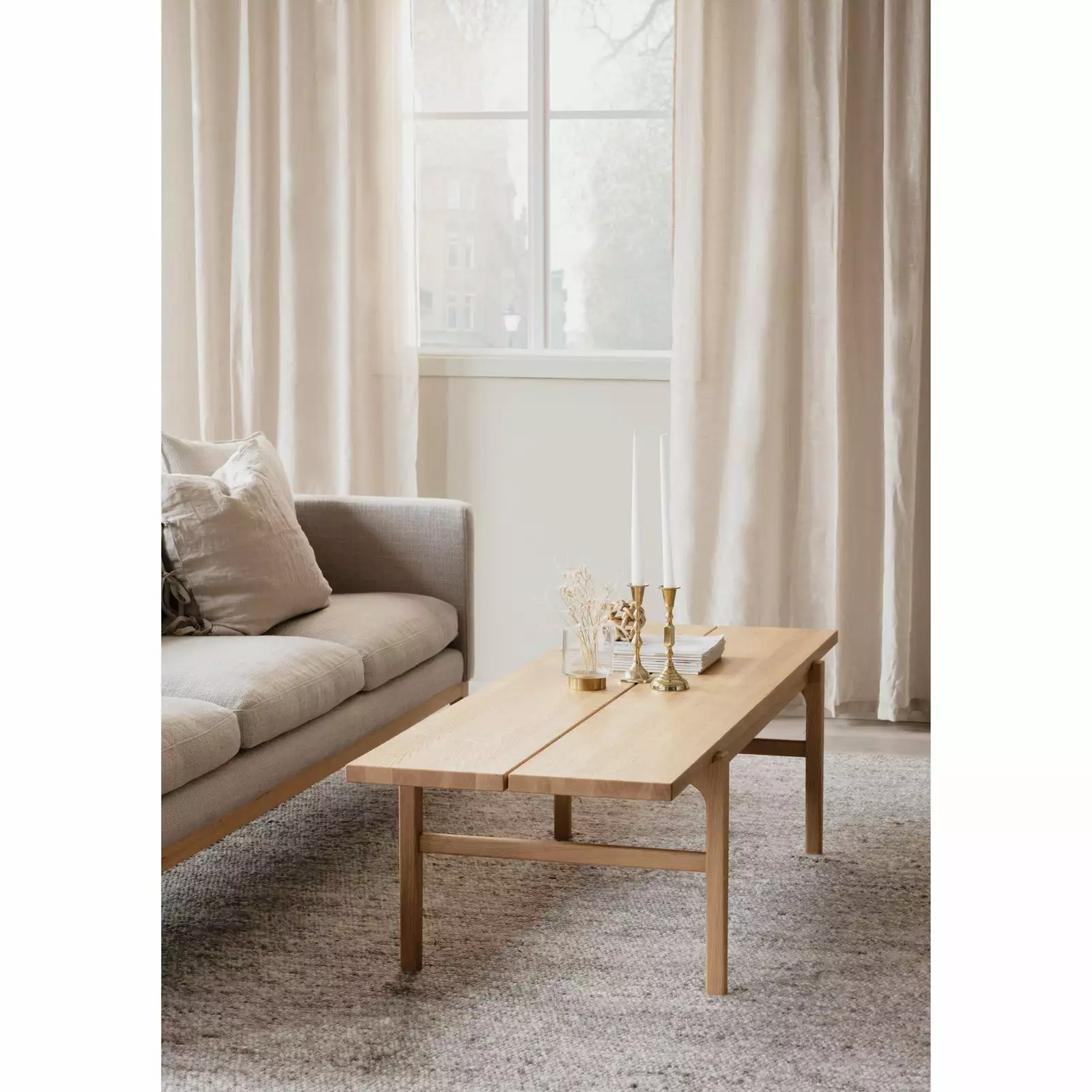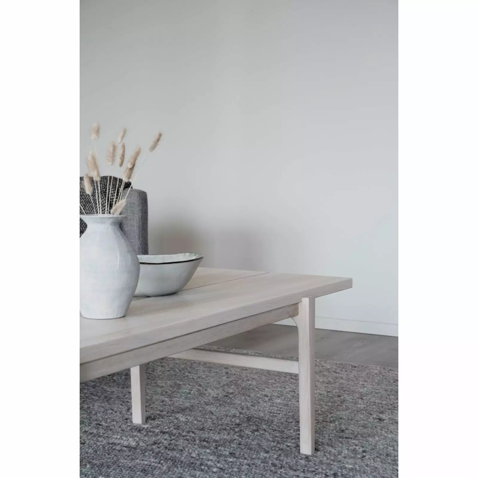 Upea Ness-sohvapöytä on tyylikäs ilmestys ja se sopii erinomaisesti skandinaavisen olohuoneen keskipisteeksi. Ness-sohvapöydässä on kahdesta lankusta valmistettu 3 cm paksu kansi, jonka materiaali on öljyttyä tai lakattua valkopigmentoitua tammea. Myös pöydän jalat ovat massiivitammea. Pyöristetyt ja kaarevat muodot sohvapöydän jaloissa tuovat perinteiseen lankkupöytään puhdasta linjaa ja modernia ilmettä. Sohvapöydän kaikki puuosat ovat 100 % FSC sertifioitua puuta.
