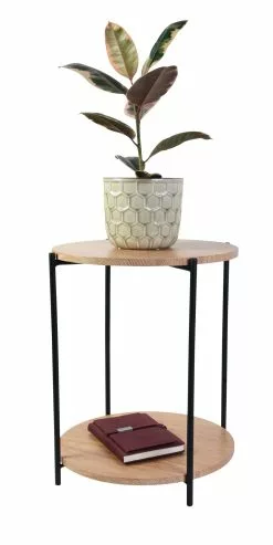 Kaunis ja siro Day-sohvapöytä sopii olohuoneeseen sohvapöydäksi tai kukkapöydäksi sekä makuuhuoneeseen yöpöydäksi. Sitä voi käyttää myös sivupöytänä ja apupöytänä tuomaan lisää laskutilaa huoneeseen. Sohvapöydän ohuet jalat antavat sille keveän ilmeen. Pöydän kansi ja alahylly ovat mdf-huonekalulevyä ja jalat mustaksi maalattua metallia.